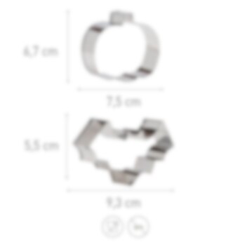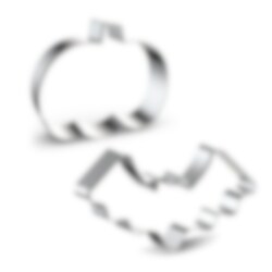 Bag (u)hyggelige kager til Halloween med dette sæt på 2 kageudstikkere i rustfrit stål. Sættet indeholder en græskarform (7,5 × 6,7 cm) og en flagermusform (9,3 × 5,5 cm) – perfekte til småkager, brunkager eller fondant. Holdbare udstikkere, der kan bruges år efter år til bagning og kreative projekter.