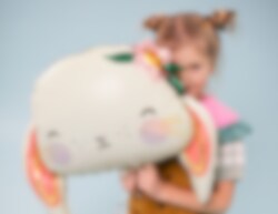 Virkelig sød folieballon med et stort kaninhoved med gulddetaljer. En sjov dekoration at pynte op med til fest, babyshower eller anden begivenhed.