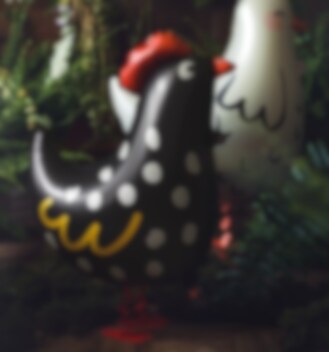 Folieballon der forestiller en sort høne med farverige detaljer. Ballonen er 93 x 60 cm oppustet og kan pustes op med luft eller helium.