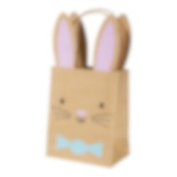 Gavepose med en sød hare som motiv. Perfekt til at putte en lille påskegave i til børnene. Posen er lavet af papir og er 15 cm høj og 12 cm bred.