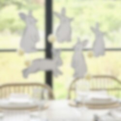 Dekorer til påske med disse sjove hængende påskeharer, der er perfekte til at sprede glæde i rummet og til at hænge op over dit påskebord. Alle påskehare har en flødehvid smuk farve og sjove haler af honeycomb.