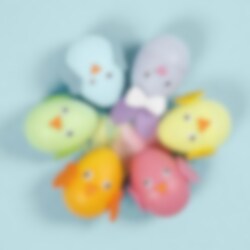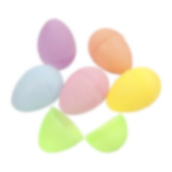 Todelte plastæg i pastelfarver uden huller. De har en størrelse på 6 x 4 cm og kan fyldes med lidt slik eller en mindre legetøj og derefter bruges i en sjov æggejagt.