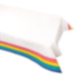 Hvid borddug af papir med pride-tema. Dugen måler 120 x 190 cm.