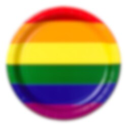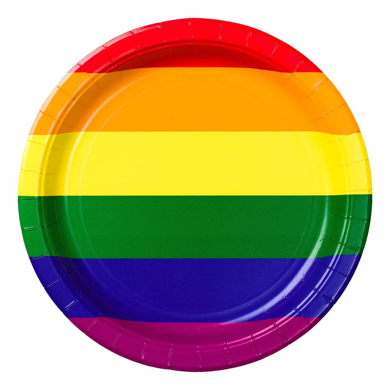 8 stk paptallerkner i Pride-farve. Tallerknerne er 23 cm i diameter.