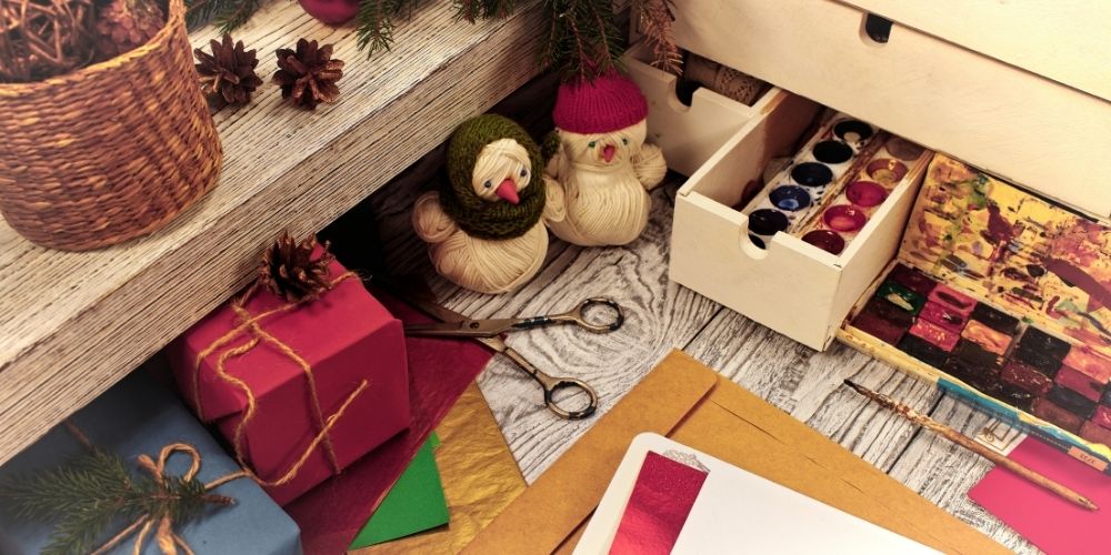 9. Nissen har lagt farveblyanter og værktøj frem og vil have at børnene hjælper ham med at lave juledekorationer.