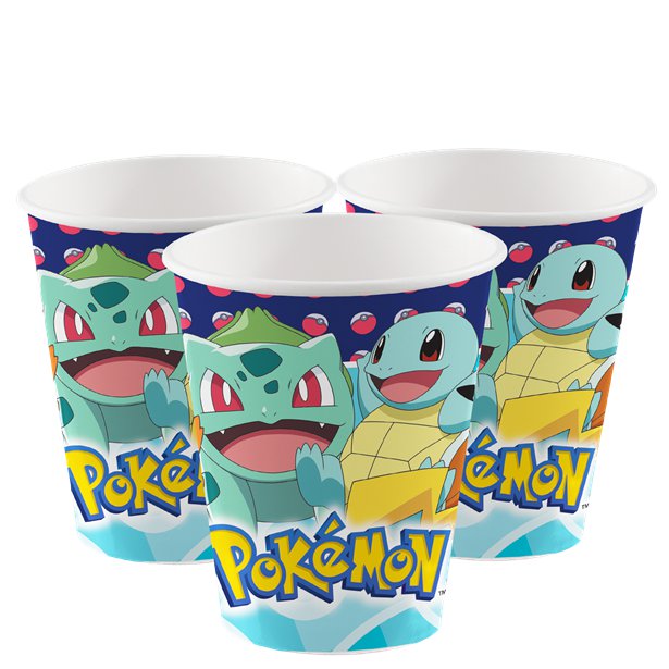 Dæk bordet med paptallerkner, papkrus og servietter med motiver fra Pokémon. Komplementer med serpentiner og nogle Pokémon figurer.