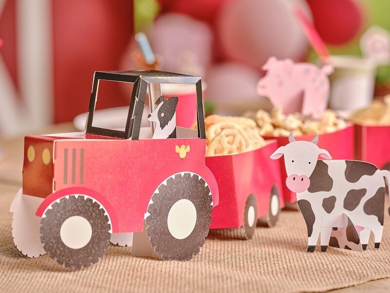 Vores bedste tip er at undersøge, om det er muligt at holde festen på en rigtig gård. Virker det ikke? Så er det næstbedste tip at vælge dekorationer, der leder tankerne hen på bondegårder, grise, køer og traktorer. Her er nogle af vores yndlingsdekorationer til en fødselsdagsfest med bondegårdstema.