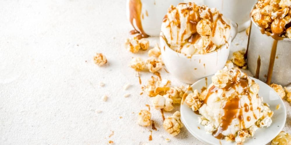 Hvad får du, når du kombinerer is, popcorn og karamelsauce? En barnlig god dessert selvfølgelig! Nej, vi er ikke gået amok...! Prøv det selv, og du vil se 😉