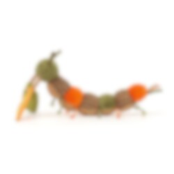 Et sjovt aktivitetslegetøj i form af en larve i grøn, brun og orange med en ring i munden, hvor der hænger to blade. Med bip, raslende og raslende lyde at opdage og forskellige teksturer og materialer at føle, kan det give timevis af udforskning. Ved hjælp af ringen kan du sætte legetøjet fast på eksempelvis barnevognen eller tremmesengen.