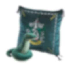 Dejlig pude i Slytherins farver med tilhørende maskot, der forestiller en slange fra Harry Potter universet. En sej gave til alle der elsker Harry Potter.