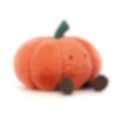 Den charmerende græskar fra Amuseables er stjernen i græskarlandet! Lækkert blødt og fluffy med orange plys, syet i buede segmenter, sjove små ben i chokoladebrun manchester og en elegant stilk i ruskindimitation på toppen.