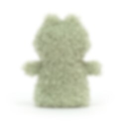 En uimodståelig og fluffy lille frø med en charmerende rund krop. Den lidt ru pelsen har en lækker lysegrøn nuance, og i det sjove ansigt ses et glad lille smil. Denne lille hoppende ven elsker at kramme, og med sine søde små arme, dejligt bløde krop og søde udtryk, er der ikke mange, der siger nej til det. Denne lille skat kan følge dig næsten overalt på dit næste eventyr eller en stille hyggestund og hjælper gerne med komfort og støtte, når det er nødvendigt. Håndvaskes og fladtørres eller hængetørres efter behov.