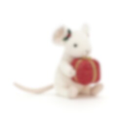 Denne hyggelige lille hvide mus ønsker at sprede juleglæde med sin glitrende røde pakke med guld snor og har dekoreret sig med kristtorn blade og et rødt bær for en ekstra julefølelse. Lavet af 100% polyester og skal vaskes forhånd efter behov.