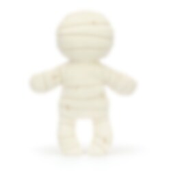 Tjek ind Mummy Bob fra Amusables! En blød og hyggelig ven, perfekt til at hygge med, især omkring Halloween. Fremstillet af 100% polyester og kan maskinvaskes ved 30°C skånevask. Hængetørres efter behov. Størrelse: 17 cm høj
