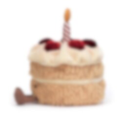 Den glæde, som denne lille fødselsdagskagen bringer, er næsten nok til evigheder. Smukt luftige bunde toppet med smørcreme og fantastiske fløjlsbløde jordbær og et stribet kagelys, der brænder for dig. Alt dette, og så det glade lille smil og de sjove små ben i fløjlsbuk – en perfekt og sjov festpige at fejre med og en trofast veninde resten af tiden. Fremstillet af 90% polyester, 10% bomuld og håndvaskes efter behov.