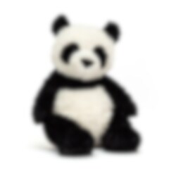 En rigtig stor, kælen og luftig panda med en lidt buttet krop i sort og hvid. Denne store drømmende bamse er elegant mønstret, med et tankevækkende udtryk i ansigtet, en lille stump til en hale og en sød trekant til en næse. Håndvask og flad eller hæng tør hvis nødvendigt.