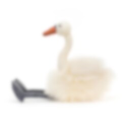 En stor og elegant svane med luftig fjerdragt og flot buet hals. Denne mægtige svane har et venligt udtryk, et orange imiteret ruskindsnæb med det karakteristiske mørke bånd i toppen og store grå fødder til hurtig svømning og lejlighedsvis gyngende gåtur. En pæn og samlet skønhed at elske. Fremstillet af 51% akryl, 49% polyester og håndvaskes efter behov.