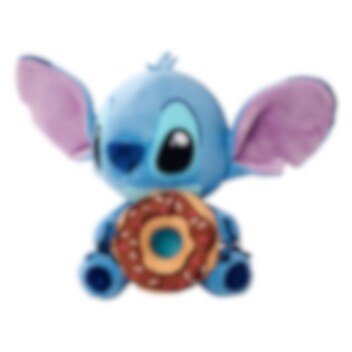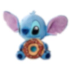 Overrask en fan med denne bamse af Stitch med donut, en blød og krammelig ven, der spreder glæde. Den charmerende blå skabning sidder med en stor chokoladedonut, dekoreret med farverigt krymmel, i sine poter.