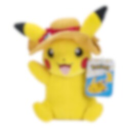 Sommer, sol og Pikachu! Denne charmerende Pikachu bamsen er klar til eventyr på solrige dage. Med en sød sommerhat og en højde på 17 cm, er denne bamse det perfekte selskab for alle Pokémon-fans. Fremstillet af 100 % polyester.