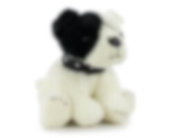 Denne bamse har et charmerende udtryk, der gør den hvide bullterrier både blød og personlig. Det gennemarbejdede design giver en realistisk følelse, samtidig med at den passer perfekt som en tryg bamse til små børn.