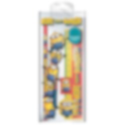 Giv skolestarten et sjovt twist med dette Minions skolesæt! Denne samling indeholder alt, hvad der er nødvendigt for en succesrig skoledag: en blyant, en kuglepen, en lineal, en blyantspidsere og en viskelæder, alle med farverige og sjove motiver af de elskede Minions.