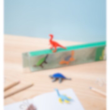 5 stk. viskelædere der forestiller dinosaurer i skønne farver. En sjov ting at have i dit penalhus, når du går i skole.