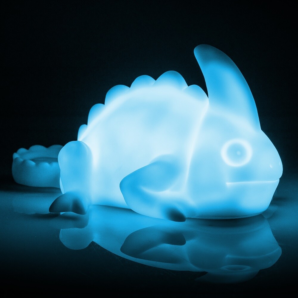 Super cool kamæleon i plastik, der passer til omgivelsernes farve. Der sidder en smart sensor under lampen, som gør dette muligt. Resultatet er fantastisk, ligesom en rigtig kamæleon. Lampen kræver 3 x AAA-batterier, som ikke medfølger, og den er ca. 18,5 cm høj.