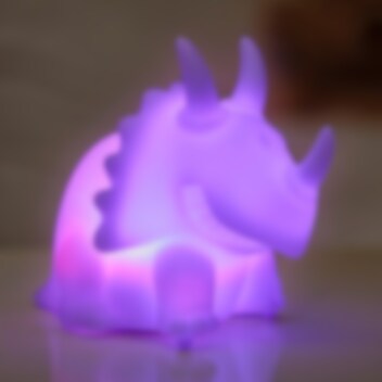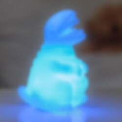 Med et enkelt tryk tænder lyset og skifter roligt mellem farverne. Perfekt til sengetid. Batterier medfølger. En skøn gave til små dinosaurfans.