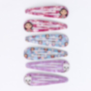 Forvandl en almindelig frisure til noget ekstraordinært med dette 6-pak af Gabby's Dollhouse hårspænder. Disse farverige hårspænder er perfekte til at tilføje en legende touch til enhver outfit og er en vidunderlig gave til enhver Gabby's Dollhouse-elsker.