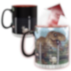 Genoplev spændingen fra den ikoniske film "Jurassic Park" med dette unikke Heat Change Porcelænskrus. Mens kruset varmes op, afslører det et fascinerende design inspireret af dinosaurernes eventyrlige verden.