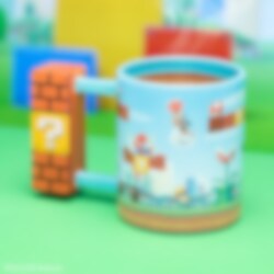Utrolig lækkert porcelænskrus med sej hank i stilrene farver og med et cool motiv af en bane fra Super Mario serien. En imponerende gave til dem, der elsker Super Mario.