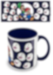 Fräck porslinsmugg med blå insida med motiv av Mario och Luigi som är omringade av en massa Boos på utsidan. Muggen är ca 10 cm hög och rymmer 315 ml.