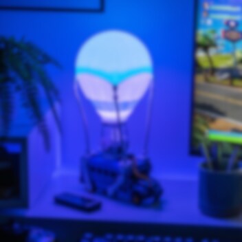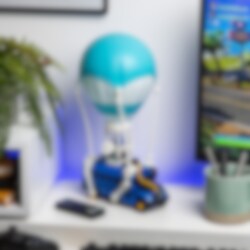Tag spiloplevelsen til et helt nyt niveau med denne episke Battle Bus-lampe. Lampen forestiller den ikoniske bus fra Fortnite og er hele 32 cm høj, med et detaljeret design, hvor bussen bæres oppe af en klassisk ballon. En perfekt dekoration til gamer-hjørnet eller en sej gave til alle Fortnite-fans.