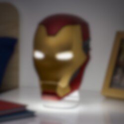 Sej lampe formet som Iron Mans ikoniske maske – perfekt til alle Marvel-fans.