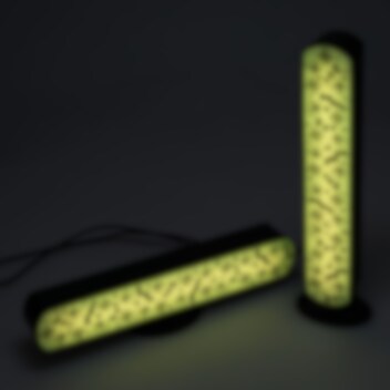 Seje lamper med motiver fra populære Minecraft, komplet med en tilhørende fjernbetjening. Perfekt pynt til alle Minecraft-fans! Lamperne har tre forskellige lysindstillinger: musikreaktiv, farvepulserende og en indstilling, hvor du kan vælge farve. De er 25 cm høje og drives af medfølgende USB-kabler, mens fjernbetjeningen kræver 2 AAA-batterier (ikke inkluderet).