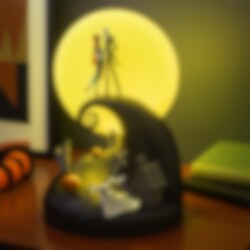 Skab den rette stemning med denne smukke diorama-lampe, der forestiller Jack og Sally i den ikoniske scene foran månen. Lampen er fyldt med detaljer som hunden Zero og græskar i forgrunden. Den er 30 cm høj og spreder et blødt lys, der gør den perfekt som både samlerobjekt og dekoration til fans af Tim Burtons klassiker.