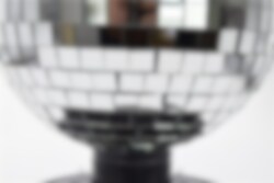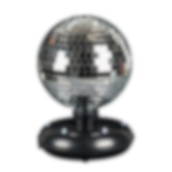 Skal det være disco, så lad det være disco! Klassisk diskokugle på fod, med 6 LED-lamper der lyser på spejlkuglen. 12v 6 watt adapter medfølger.