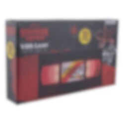 Lampe, der forestiller et klassisk VHS-kassettebånd med Stranger Things-logoet foran. En fin detalje at have i hjemmet. Lampen har rødt LED lys og har en størrelse på 18 x 10 cm. Lampen forsynes enten af det medfølgende USB-kabel eller af 3 stk. AAA batterier medfølger ikke. Dette er et officielt licenseret Stranger Things-produkt.
