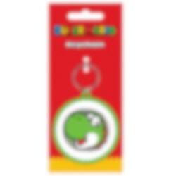 En sjov nøglering fra Super Mario med Yoshis smilende ansigt på en rund gummibrik med grøn kant. Fungerer både som nøglering og fidget-legetøj takket være den snurrende funktion.