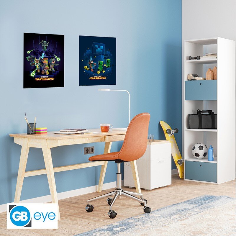 Oplev magien ved Minecraft Dungeons direkte på dine vægge med dette eksklusive sæt med to plakater. Hver plakat er omhyggeligt designet med detaljerede illustrationer fra det populære spil, der tilføjer et levende og farverigt touch til ethvert rum.