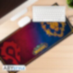 Eksklusiv musemåtte af høj kvalitet med flot motiv af Alliance og Horde logoet fra World of Warcraft. Peppe op din gaminghjørne med denne for eller hvorfor ikke give den som gave til den, der elsker World of Warcraft.