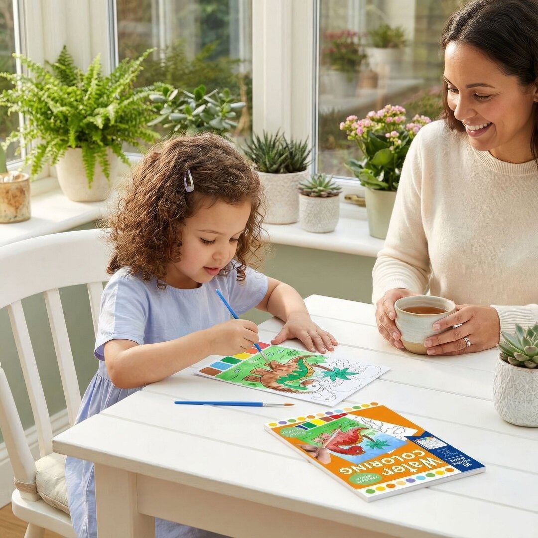 En sjov og kreativ malebog, hvor børnene maler med rent vand. Dyp den medfølgende pensel i vand og farvelæg de forskellige dinosaurmotiver direkte på siderne. Perfekt som en rolig festaktivitet eller gave til små dinosaurentusiaster.