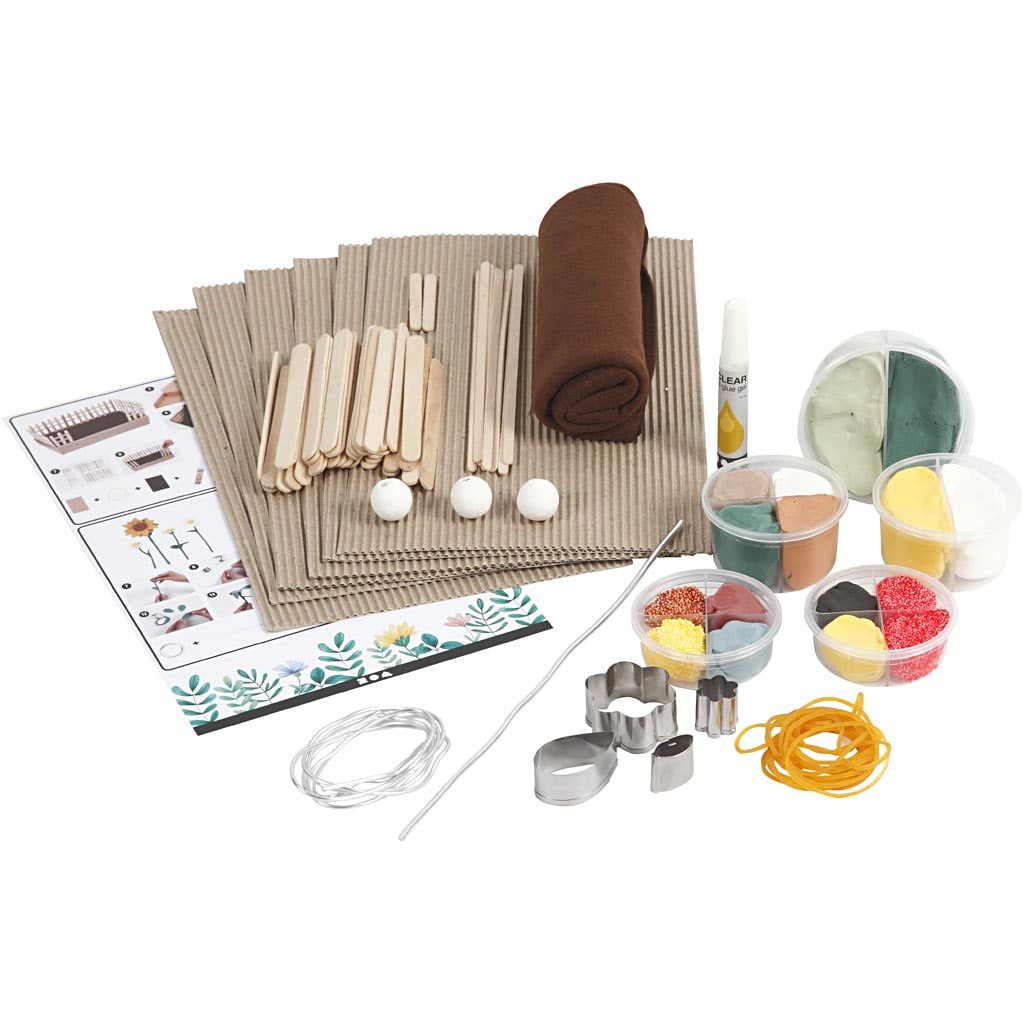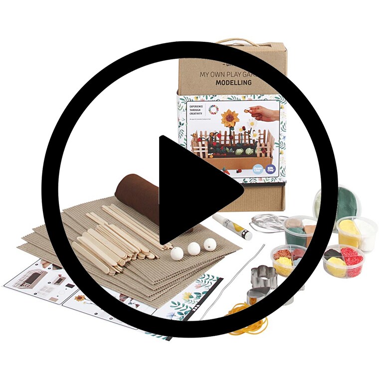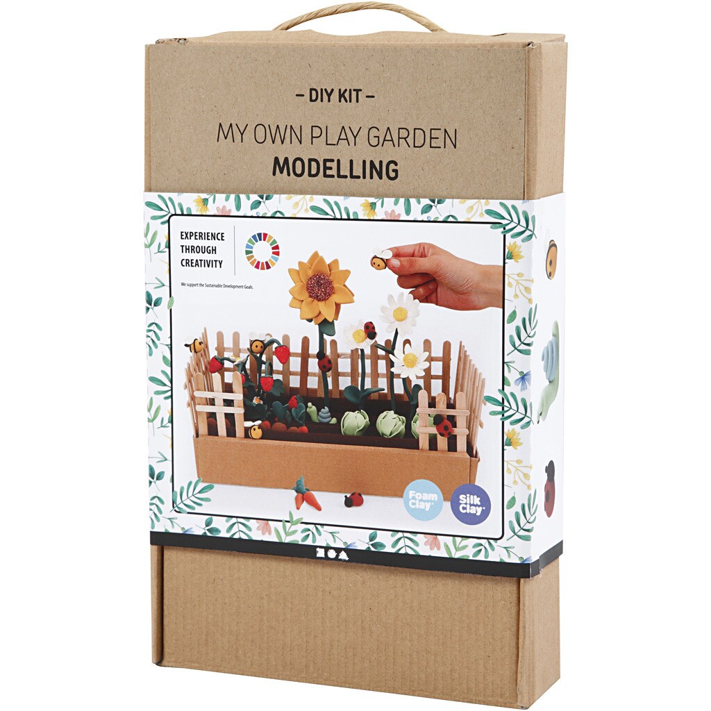 Skab din egen legeplads med dette søde byggesæt. Kreer og modeller blomster, grøntsager og insekter til at sætte i din have. Brug papssættet, som base til din have, og opbyg det nøjagtigt som du vil. Inspiration og beskrivelse inkluderet. Byggesættet indeholder: Silk Clay® og Foam Clay® i flere forskellige farver, filtkugler, aluwire, bølgepap, filt, ispinde, udstiksform og lim.
