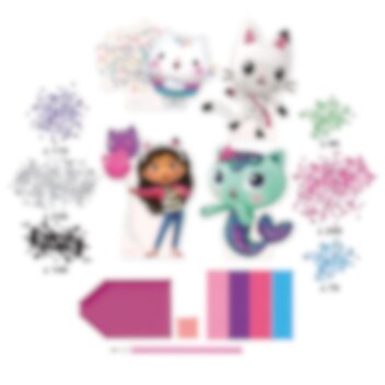 Lad kreativiteten blomstre med dette glimrende diamond painting-sæt fra Gabby's Dollhouse. En sjov og afslappende aktivitet, hvor børnene dekorerer fine motiver med små farverige 'diamanter', der fæstes på selvklæbende skabeloner.