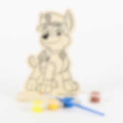 Tag på mission med Chase fra Paw Patrol, nu som en malervenlig træfigur. Der medfølger maling og pensel, så børnene kan skabe deres helt egen helt direkte derhjemme ved hobbybordet. En perfekt aktivitet for små fans af den modige politihund, uanset om det er til fest eller en rolig stund derhjemme.
