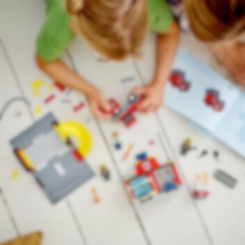 Sæt gang i børns fantasi med LEGO® City legesættet Brandstation og brandbil (60375), der omfatter legetøj i form af en brandstation med soverum, garage og en sjov rutsjebane. Børn får også en sej brandbil med en fleksibel slange og stige på taget. Bare tilsæt popcornvognen, et par LEGO flammer og minifigurerne af sælgeren og brandfolkene for at få timevis af actionfyldt leg. Trykt og digital byggevejledning Dette 4+-legesæt er nemt at bygge og omfatter et LEGO startklodselement og billedvejledning og kan findes i LEGO Builder appen – en digital hjælper med intuitive zoom- og drejeværktøjer, så børn kan visualisere den færdige model fra alle vinkler, mens de bygger. Udforsk verden gennem leg LEGO City 4+-legesæt omfatter detaljerige bygninger, realistiske fartøjer og sjove karakterer, der inspirerer til ubegrænset, fantasifuld leg. Børn lærer om verden omkring sig gennem historier og scenarier, der skildrer virkeligheden på en sjov og spændende måde.