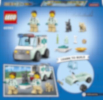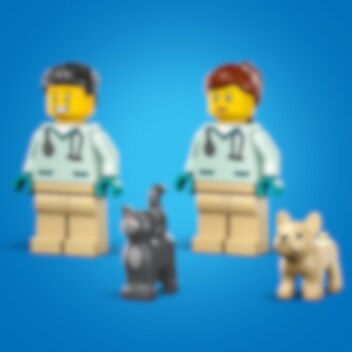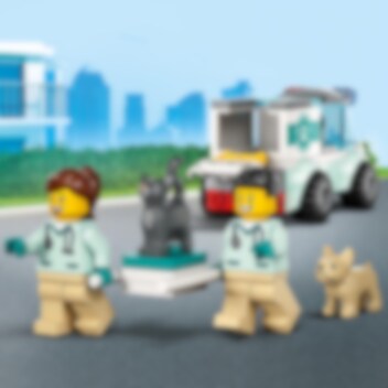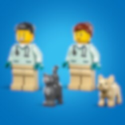 Tag med dyrlægerne ud på dyreredningsmissioner. Læg udstyret i bilen, og drag afsted i den seje redningsvogn. Giv den sultne kat mad med sutteflasken. Giv hunden et saftigt kødben. Brug båren til at samle syge dyr op, og giv dem medicin med sprøjten. Få masser af eventyr med dyrepleje med LEGO® City sæt!