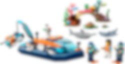 Sejl ud på det åbne hav ombord på det ultramoderne Forsknings-dykkerfartøj. Brug kranen til at hæve og sænke den selvstyrende miniubåd, tag dykkerudstyret på, og begiv dig ned på havbunden. Svøm med en hammerhaj og en rokke, og opdag et smukt koralrev, en sunket skattekiste og en sød havskildpadde. Der venter spændende hav-eventyr forude!