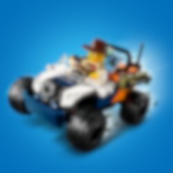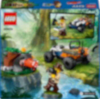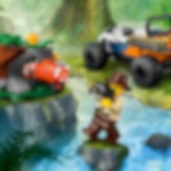 Grib dit kort, din walkie-talkie og dit kamera, hop bag rattet i ATV'en, og kør ud på en mission for at finde den vilde røde panda. Tag med jungleeventyreren ud på episke oplevelser i den robuste ATV med det seje design og de kraftige dæk, der kanhåndtere det barske jungleterræn. Dyk ned i en verden af historier om junglens dyreliv med LEGO® City!