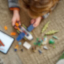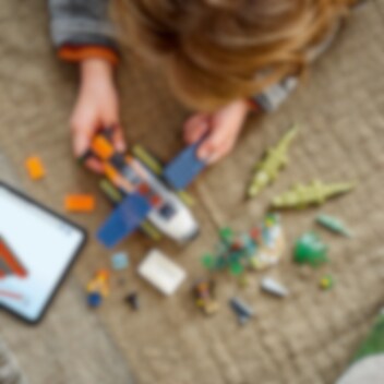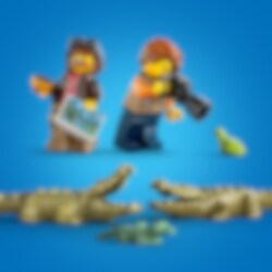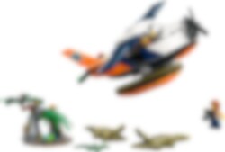 Tag dit kort og kamera med, og gå ombord på vandflyveren for at opleve episke eventyr i den vilde natur. Drej propellen, og sus hen over vandet i høj fart for at få luft under vingerne. Udfør en perfekt flodlanding, og opdag en junglehule, en sød frø og en familie af krokodiller. Dyk ned i en verden af historier om junglens dyreliv med LEGO® City!